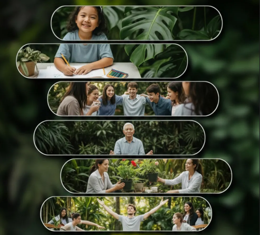바이오필릭 디자인을 적용한 친환경 정원과 생활 속 치유 공간을 조성하여 일상에서 정서적 회복과 관계 회복을 경험할 수 있는 치유 환경을 제공합니다