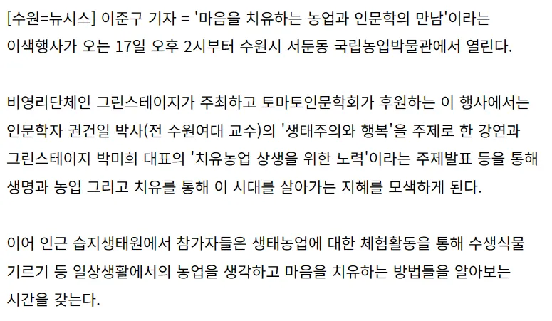 사람과 자연을 연결하는 치유 공동체